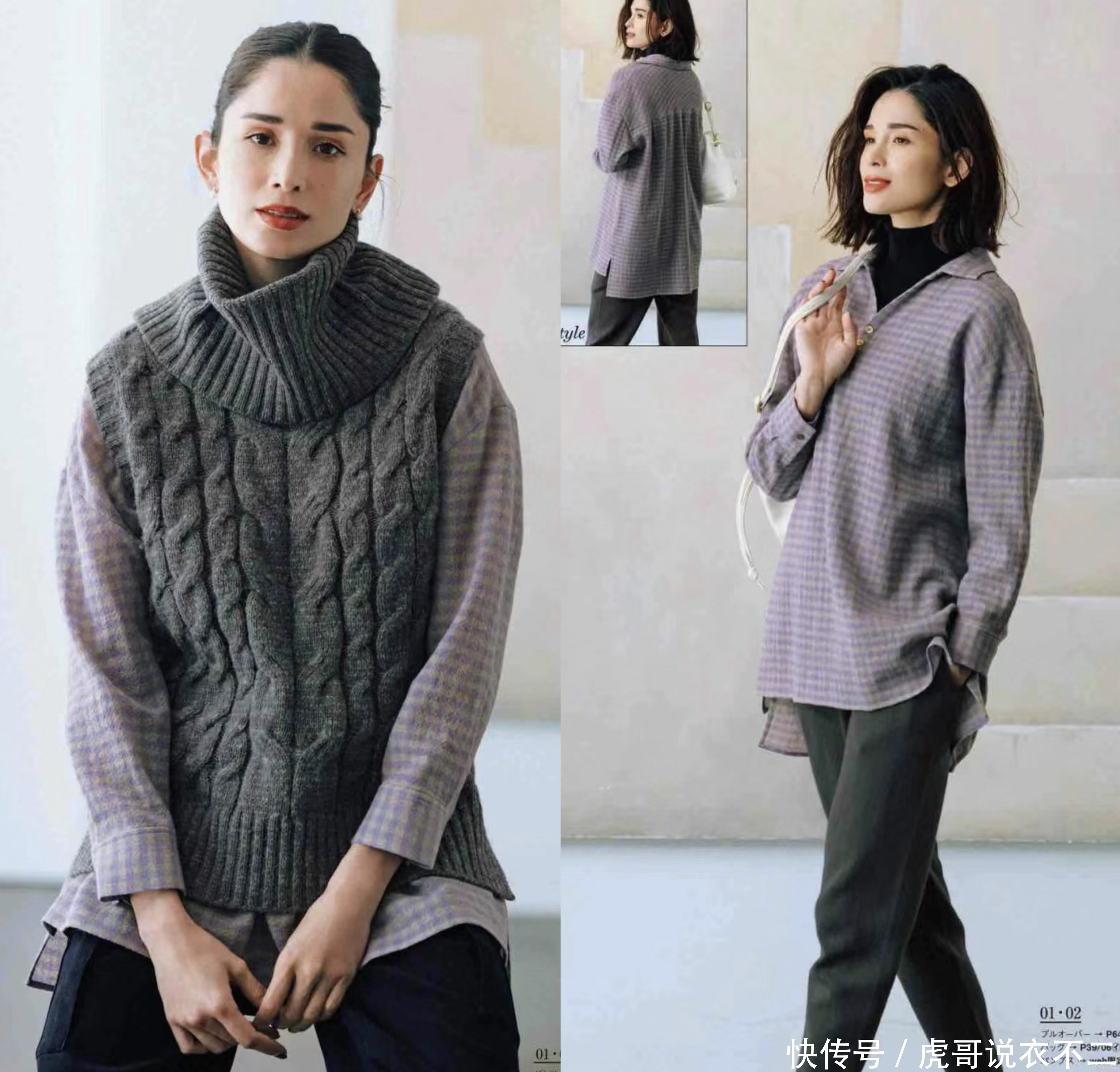 这两套穿搭都遴选的是高领单品和低领衣饰的组合,领口之间就不会相互艰涩,看着极为妥洽。