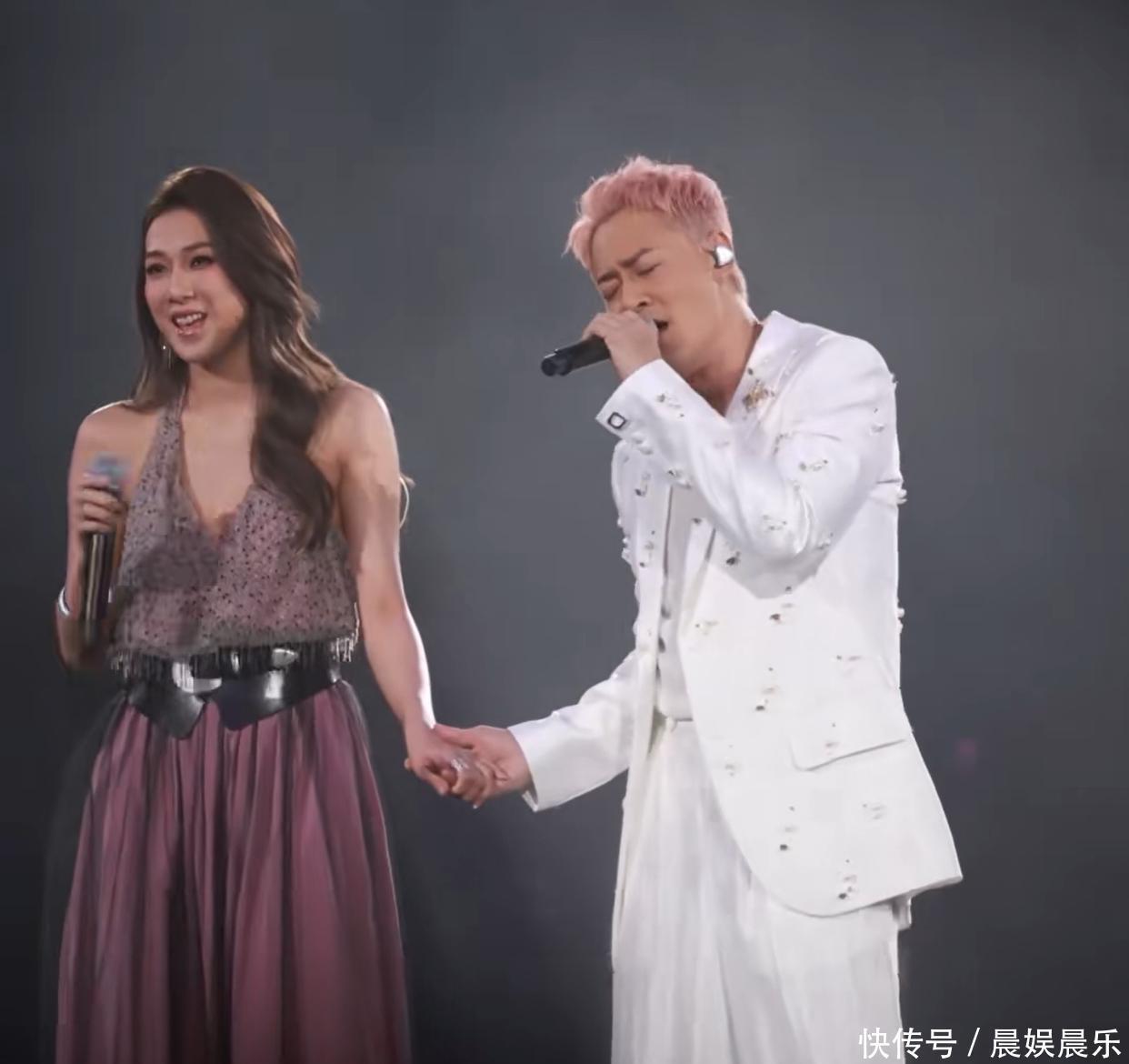不同于谢霆峰一东谈主硬控全场,林峰的嘉宾请得挺多,先是相助过《溏心风暴》的钟嘉欣。当钟嘉欣空降舞台后两东谈主牵手齐唱,大荧幕升沉《溏心风暴》片断,林峰现场规复当年经典台词,一句“莫得常在心的日子第7900日”把钟嘉欣给整哭了,不雅众也随着泪眼婆娑。