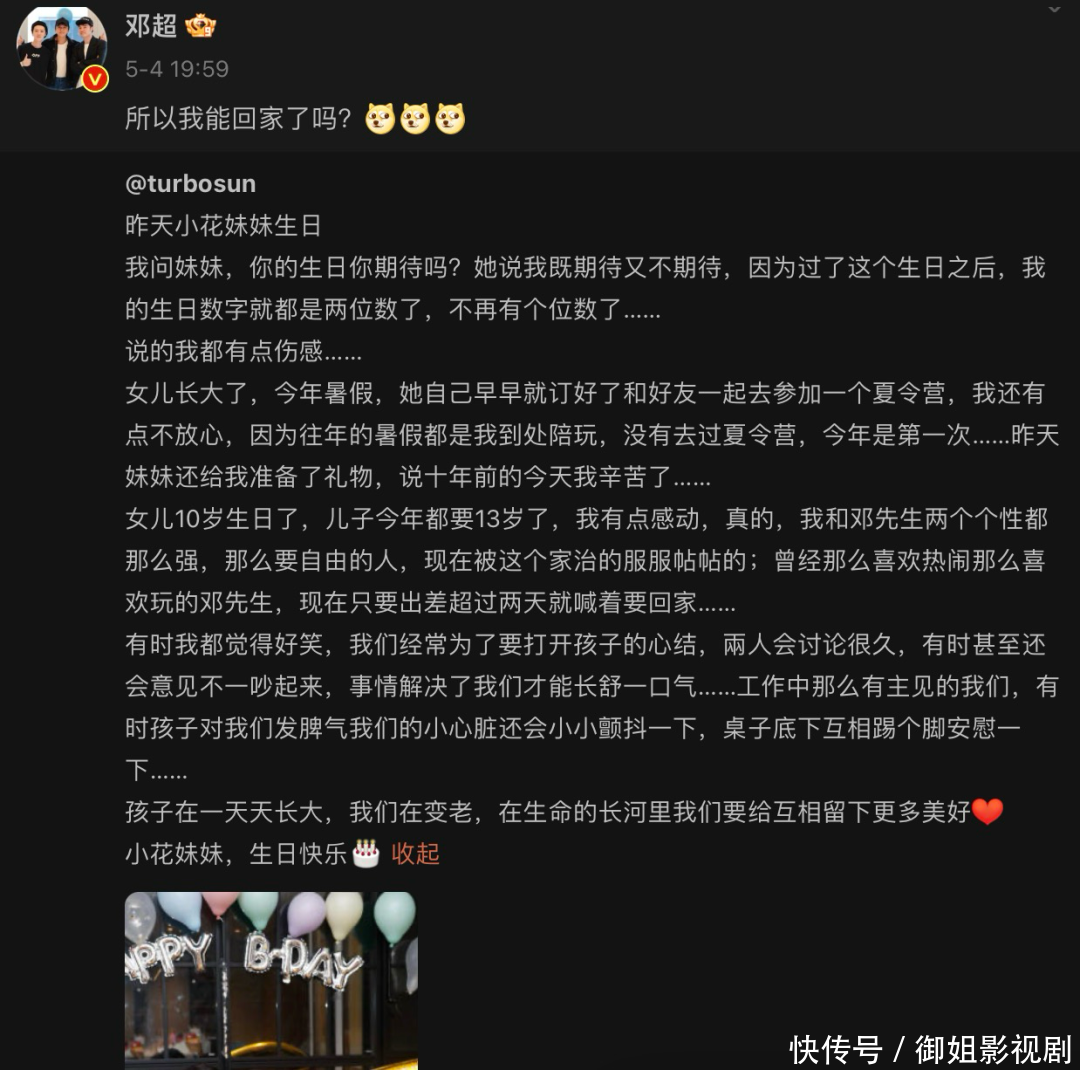 在微博上互动,也让我们知说念这明星两口子的日常。